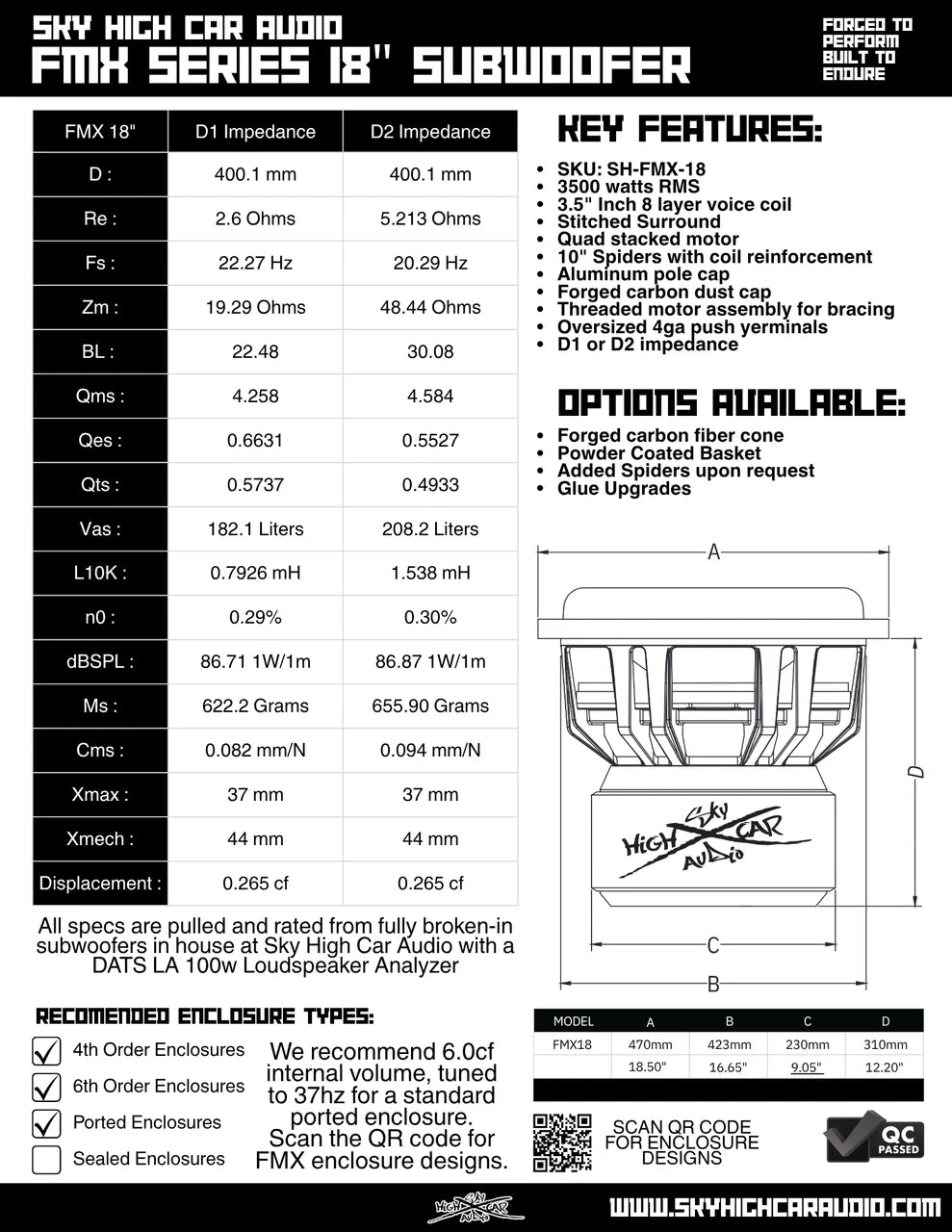 The FMX Series from Sky High Car Audio is the next evolution of our commitment to high-output, thermally superior yet efficient subwoofers for serious bass enthusiasts. With decades of experience, competitive insight, and